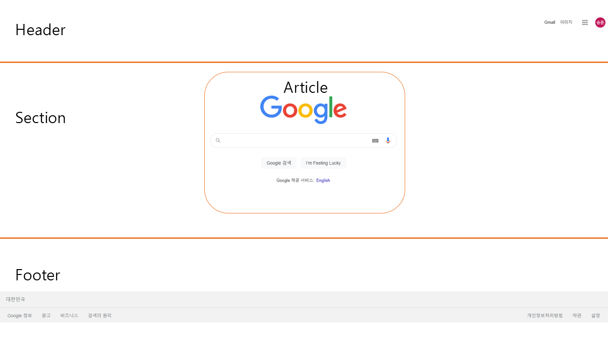 조금 어거지인 면도 있는 것 같은데 일단 시멘틱 구조를 최대한 적용해보고자 해당 사진처럼 구조를 잡았다. ㅎㅎㅎ
