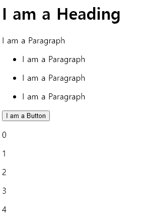 something이 선언될 때마다 text가 바뀌고 body에 추가된다. 웹에는 0부터 4까지의 숫자가 출력된다.
