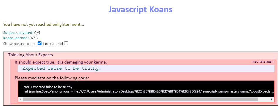 Github에서 남이 작성한 코드를 다운 받는 것도 처음이고, Readme를 읽는 것도 처음이었다. expect, it, describe를 본 적이 없으며 영어로 된 것들을 해석한다고 1문제부터 막혔었다. 진짜 쉬운 문제였는데...