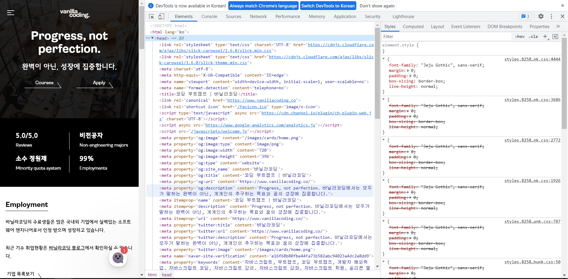 생활코딩에서 HTML, CSS, Javascript도 들어보고 SW사관학교 정글 자료를 보면서 공부도 했었지만, 잘 만들어진 페이지의 코드를 보면 여전히 모르는 것이 많다.