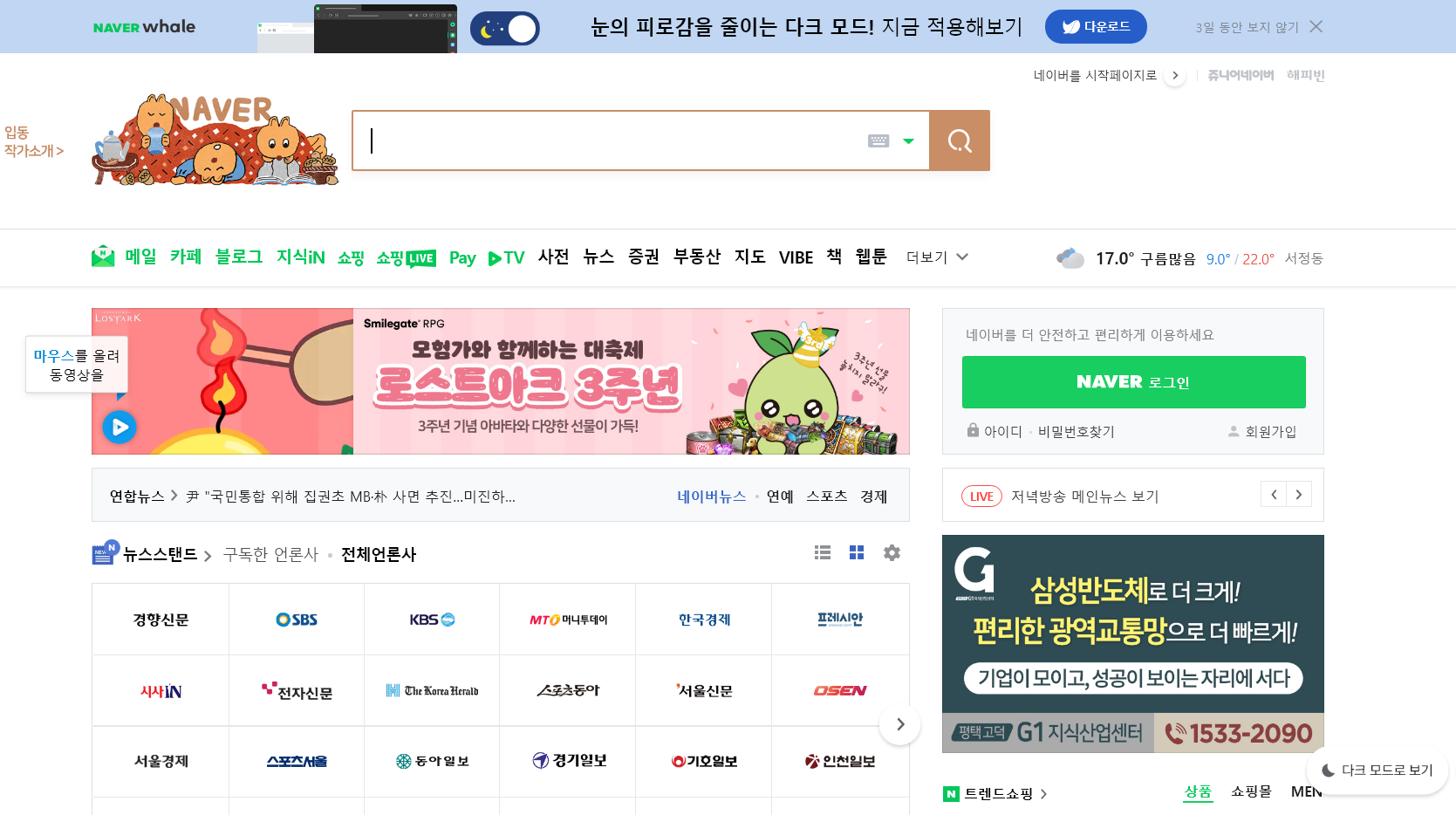 | header | 맨 윗부분으로 사이트 로고, 로그인, 언어 선택 등이 위치한다. |